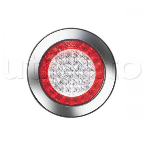 FEU ARRIERE MODULAIRE A LEDS A ENCASTRER AVEC ENJOLIVEUR CHROME DIA:155 / 3 FONCTIONS: VEILLEUSE, STOP, CLIGNOTANT 24 VOLTS